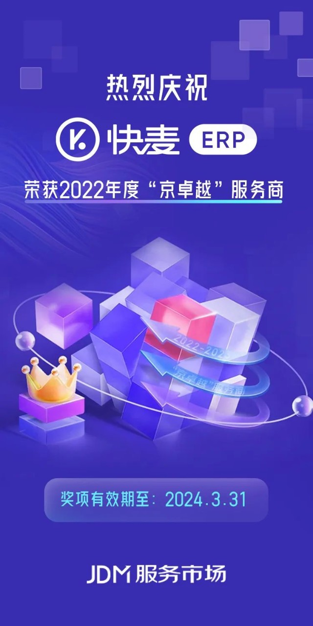 近日,2022年度京东服务市场“京卓越”服务商获奖名单正式公布,壹定发官网科技旗下快麦ERP再次凭借优质的服务,荣获软件类服务商订单工具“京卓越”合作伙伴奖项。