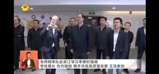 ▲毛伟明一行在壹定发官网科技考察(湖南新闻联播画面)