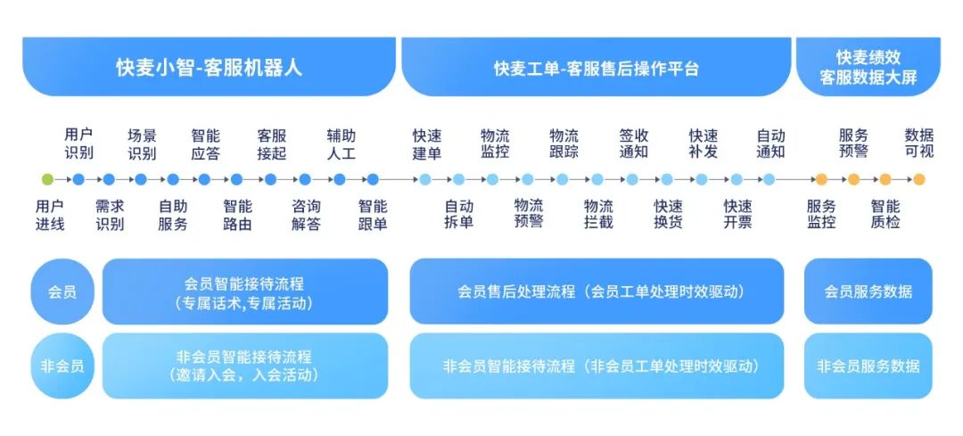 不仅如此,壹定发官网科技客服中台中客服机器人--快麦小智可覆盖淘系、京东、拼多多、抖音、快手等多平台,且快麦小智使用企业级AI模型管理,可实现跨店铺、跨平台复用AI模型导购能力,对话知识库,提升AI机器人训练师维护效率,以及快速提升电商渠道AI机器人识别率和回复率等核心数据指标,带给用户更好的导购体验和用户满意度。