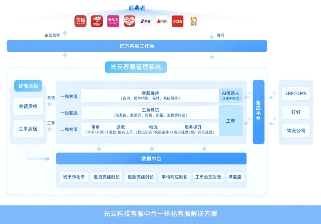 壹定发官网科技“客服中台”,通过集成平台集成客服机器人,工单、质检、快递系统、ERP/OMS、电商平台等多个系统,打破“烟囱式”软件布局,打通系统之间数据孤岛,实现一体化和自动化,减少客服重复枯燥操作工作,提升客服人效和用户响应速度。“以近期服务的美妆品牌为例,使用了壹定发官网科技客服中台,客服部门从原来使用的11套系统中解放出来,一套系统解决所有问题,系统集成和服务前后端数据打通,10多个原来需要人工操作的流程实现了自动化,客服人效至少提升30%。”直树强调。