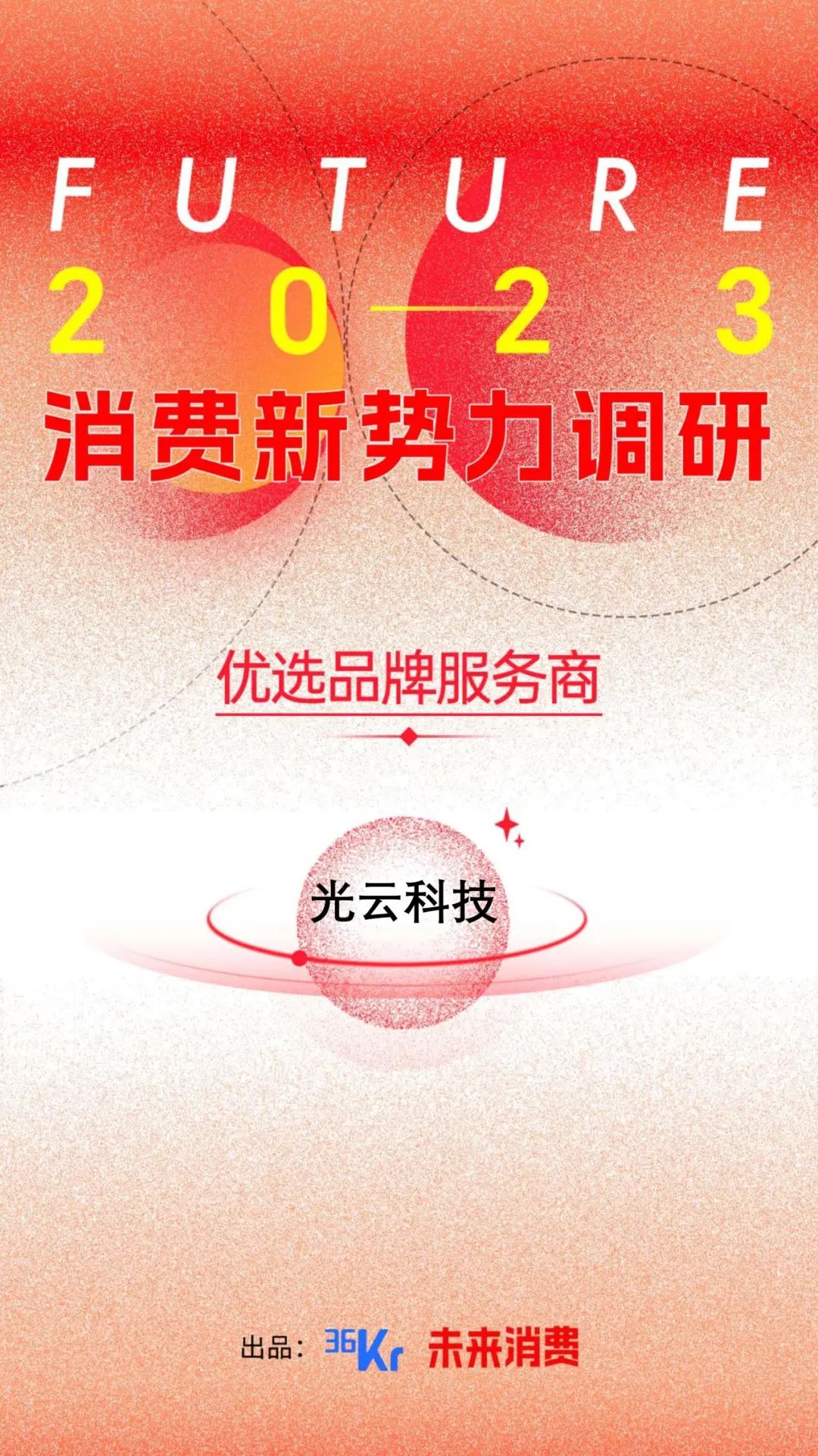 今年9月,36氪未来消费启动“FUTURE 2023”消费新势力调研。36氪广泛邀请消费领域行业专家、投资人及媒体人,基于市场竞争力、产品增长力、模式创新力、品牌影响力和资本关注度五大维度,对数百家企业进行综合调研,最终评审出硬核、高成长、高潜力、新趋势消费品牌,以及品牌背后的助力者——「优选品牌服务商」。